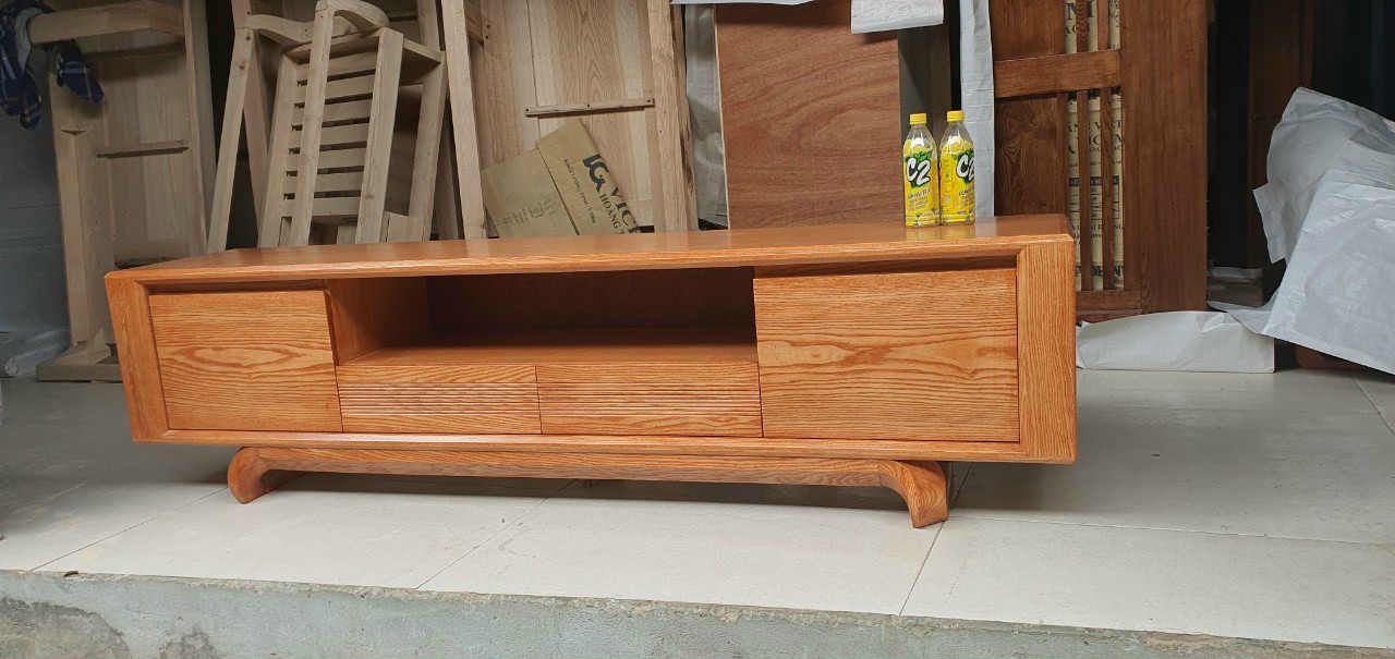 Kệ tivi cao cấp gỗ sồi lau màu hương