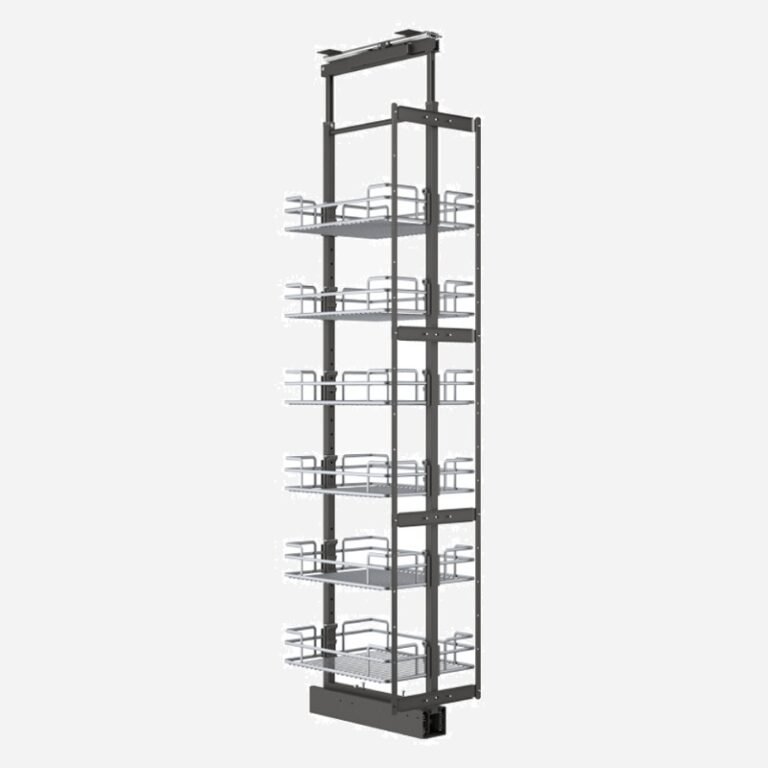 - Thiết kế gắn liền hệ ray trượt giản chấn, chỉ cần mở cánh tủ nhẹ nhàng kéo thì thùng rác sẽ chuyển động theo.